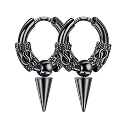 1 Paar elegante silberfarbene Creolen mit detailreichen Schlangenakzenten und einem prägnanten, spitz zulaufenden Anhänger. Das glänzende Finish unterstreicht den kraftvollen, mystisch-edgy Charakter dieser Ohrringe. Ideal für Gothic-, Punk- und alternative Looks – ein markantes Statement-Paar mit stilvoller Präsenz.