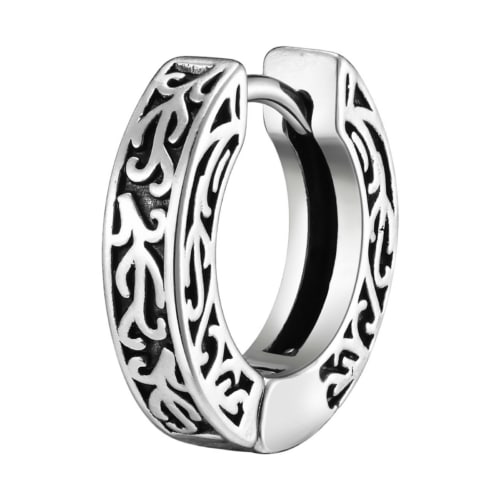 Dunkle Creolen mit fein eingravierten, runenartigen Ornamenten, die sofort eine mystische, nordisch inspirierte Ausstrahlung erzeugen. Die kompakte Form sorgt für angenehmen Tragekomfort, während das detailreiche Design ein starkes Statement setzt. Ideal für Gothic-, Viking-, Pagan- und alternative Looks – kraftvoll, geheimnisvoll und absolut charakterstark.