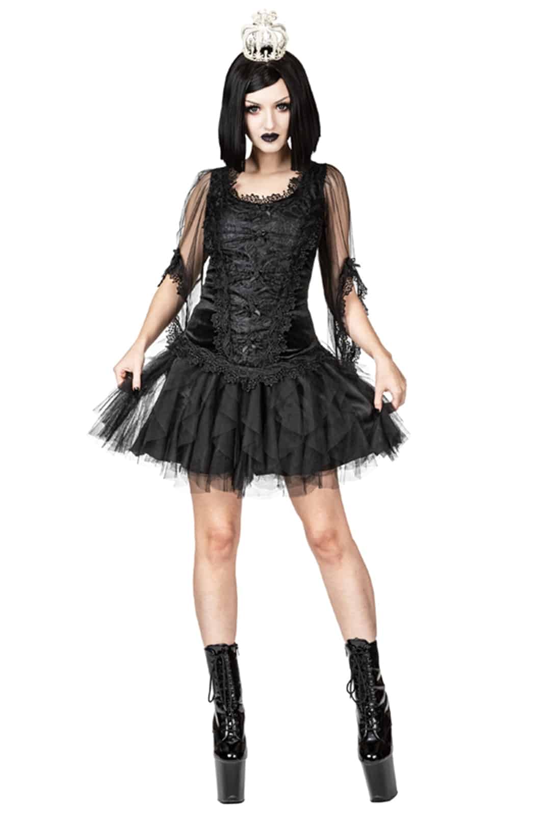 Schwarzer Lolita-Minirock aus Netzstoff, bestehend aus zwei Schichten: Die oberste Schicht besteht aus einem weichen schwarzen Netzstoff, der vertikal mit mehreren Schichten aus weichem schwarzen Netzstoff verziert ist, um einen vollen und fließenden Effekt zu erzielen. Der Rock ist vollständig mit schwarzem Satin gefüttert und hat einen elastischen Bund mit verstecktem Reißverschluss an der Seite für eine perfekte Passform.